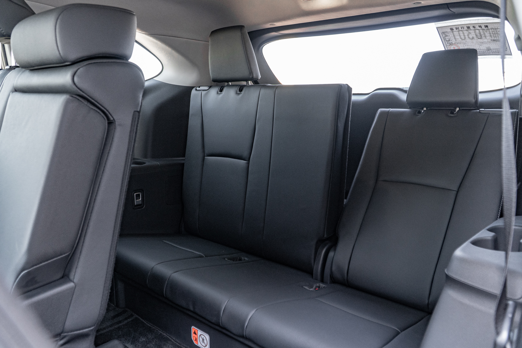 一般来说这种七座中型SUV进出第三排都会有些不便,全新汉兰达为了增大进出第三排的开口,将第二排座椅的滑轨向前延长了30mm,虽然还得钻进钻出,但确实会感觉从容一些。从实际体验来看,全新汉兰达的第三排座椅的坐垫和靠背比上一代车型更厚实,在同级别中算表现不错的。