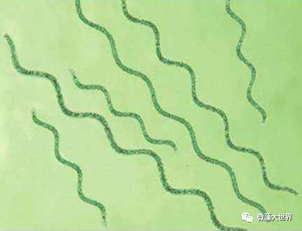 螺旋藻属于蓝藻门、蓝藻纲、颤藻科、螺旋藻属。是一种古老的低等原核单细胞或多细胞水生植物,形如钟表发条,呈螺旋状蓝绿色,所以又称为蓝绿藻。