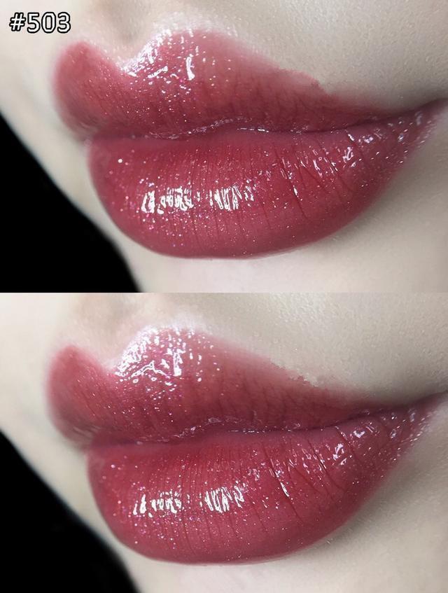 第六支:阿玛尼黑管镜面唇釉#503,买了之后大吃一惊的感觉,就觉得从灰姑娘马上变成一个bling bling靓丽的小仙女一样。妆感是透明的,所以你是不同唇色的话会跟他碰撞出不一样的火花。非常有光泽但是不会特别粘腻。这支完全不沾杯,是一支非常能够给妆容增加亮点的唇釉。