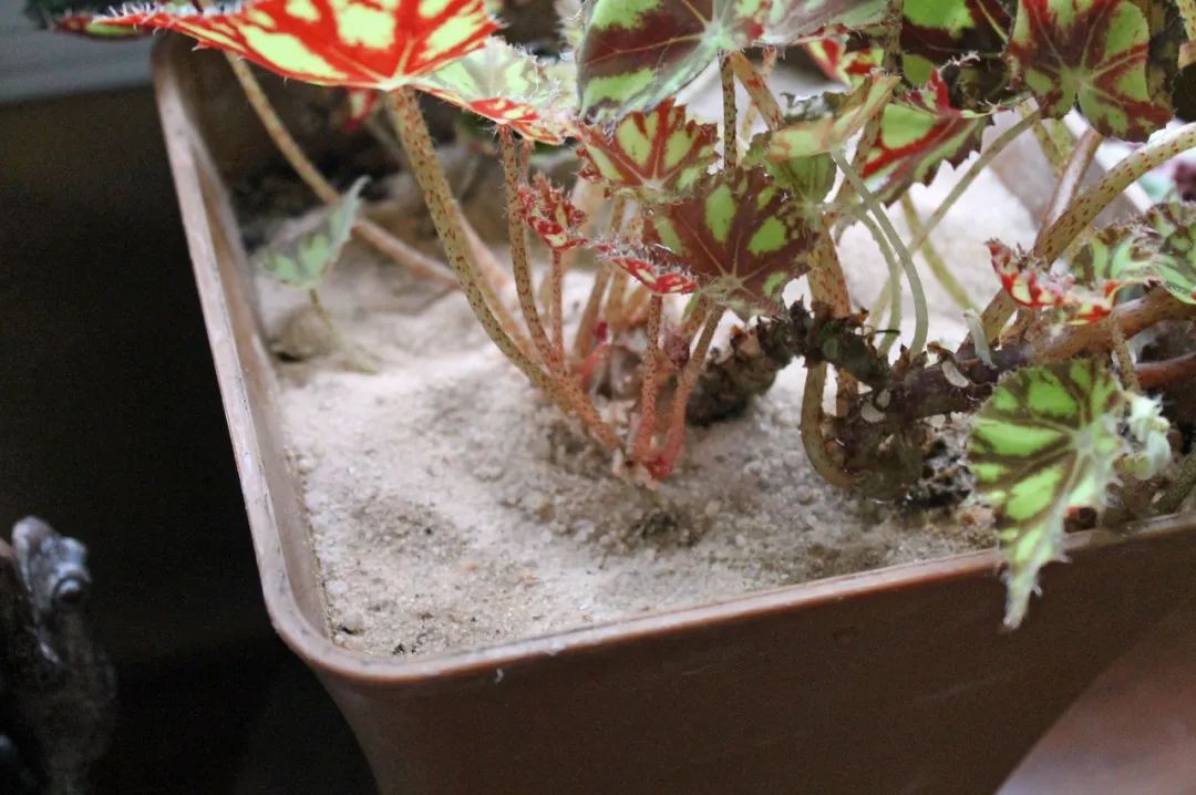 除了维持盆土干燥,还可以在土面上撒上一些干燥的物质,就比如常见的干燥细沙、干燥的硅藻粉或硅藻石或干燥的咖啡渣,撒上大概有3~5厘米厚即可。