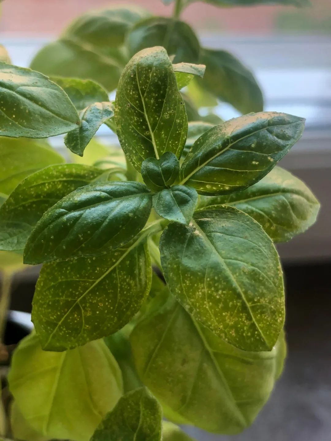 罗勒叶子变粗糙,叶面叶背有黄色斑点