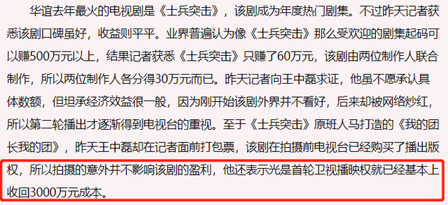 不投就不投,高群书也是蛮倔强的,他也没到处去拉投资,而是干脆自己投钱拍,坊间传闻他花了420万,420万听着不少,但在电视剧行业是啥概念呢?同样是低成本的《士兵突击》,都要花700多万拍摄,到了《我的团长我的团》,制作费就有3000多万了。