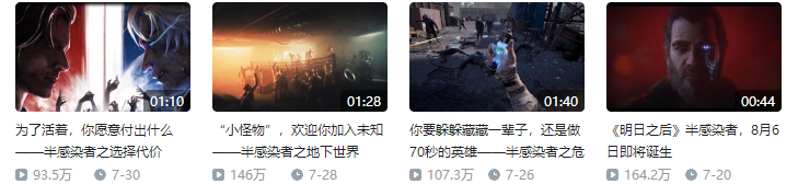 在B站,相关的宣传片一周之间相继突破百万。
