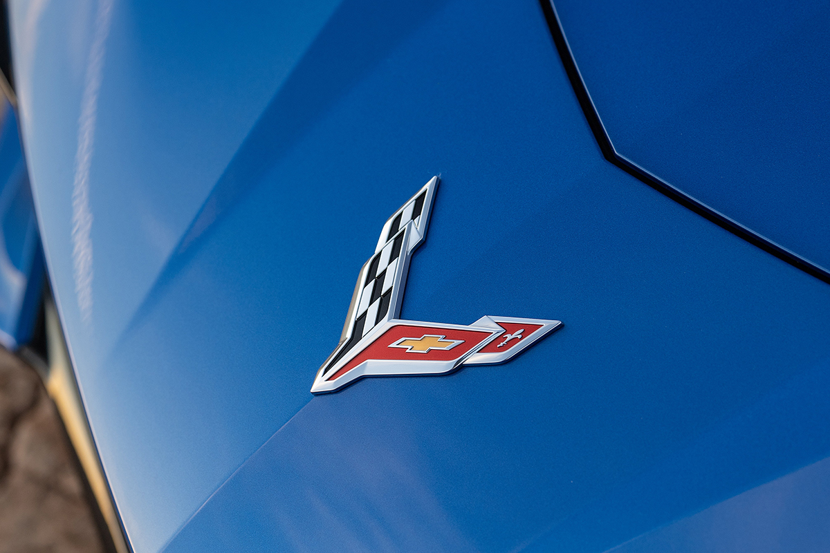 而到了现如今的第八代科尔维特,logo再一次发生了变化,看起来更瘦,且两个旗帜中间完全贴合。右侧的奖杯,再次简化了下方的横杠。