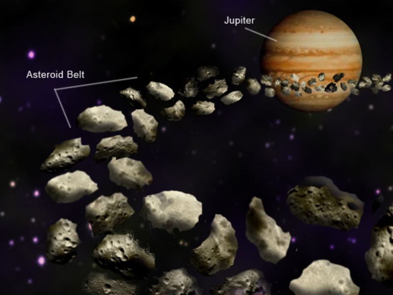 围绕太阳转的火星和木星之间的小行星带中运行。有几个被称为希腊人和特洛伊人的小行星与木星共处同一个轨道,它们在著名的拉格朗日点的前方和后方稍有移动。它们以相同的速度运行,所以不会被木星的引力所吸引。