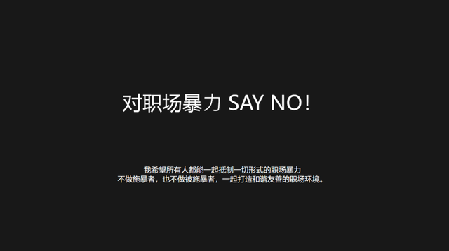 最后,我希望所有人都能一起对职场暴力说不!抵制一切形式的职场暴力,不做施暴者,也不做被施暴者,打造和谐友善的职场环境。