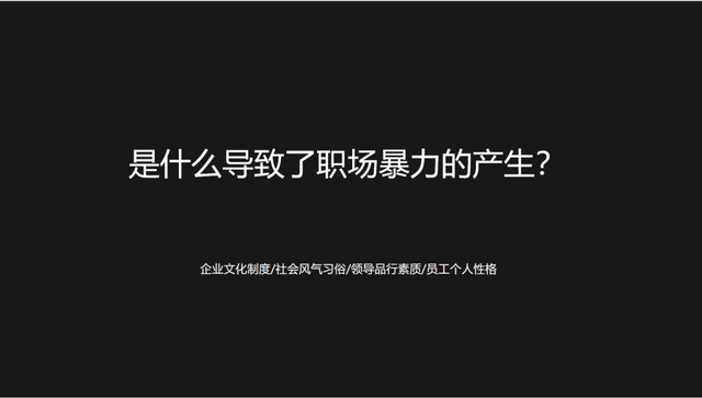 相对而言提倡狼性文化、个人英雄主义严重、老板是绝对权威的企业,最容易出现职场暴力。由于受到等级制度和尊卑文化的影响,自上而下都没有保障员工受尊重和被平等看待的制度保障和文化基因,上司与下属在组织内的权力关系明显的不对等,上司往往掌握着各种资源和支配权,拥有更高的权威,越是下层的员工,就越不容易被尊重,越容易成为职场暴力的被施暴者。