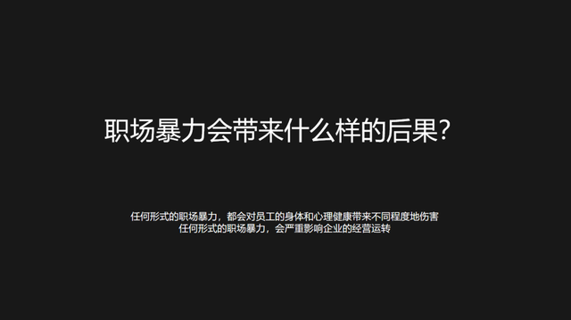 其次,任何形式的职场暴力,都会给员工的心态和行为带来负面影响,都会给员工的正常工作带来不良影响,容易激化企业内部矛盾、增加内耗,影响企业团队的健康和稳定,会严重影响企业的经营运转。
