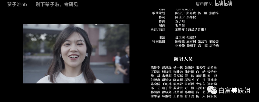 曾作为女主角,在复旦大学官方账号发布的19级毕业短片中出镜。