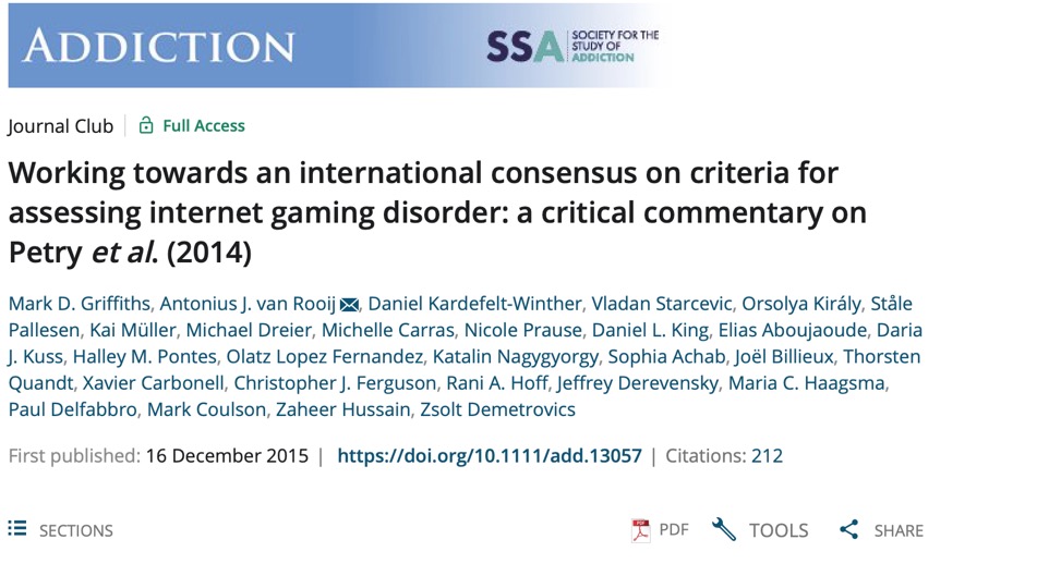 对于这一分类的代表性,在研究者中存在着争议。如2015年Griffiths, van Rooij等学者在Addiction期刊上对于Petry等人此前撰写的网络游戏障碍的真实性和代表性提出质疑,并对每一条IGD标准提出了讨论和建议。 https://doi.org/10.1111/add.13057
