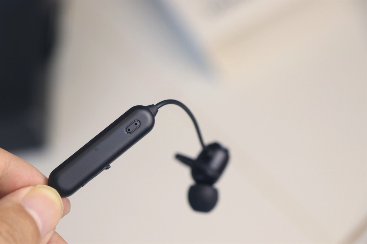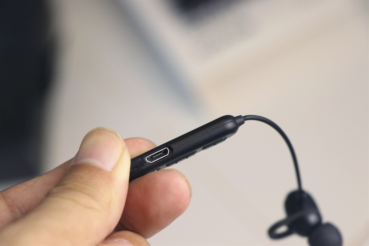 在正常佩戴时右侧颈圈下方延伸的线材上单独设计了一个操控区,3个物理按键回弹清脆,按压力度适中。每个按键表面都有微微凸起的标识,日常使用可通过大拇指触摸找到对应的操作功能键。同时在其侧面还有Micro USB充电口,背面有降噪麦克风口。