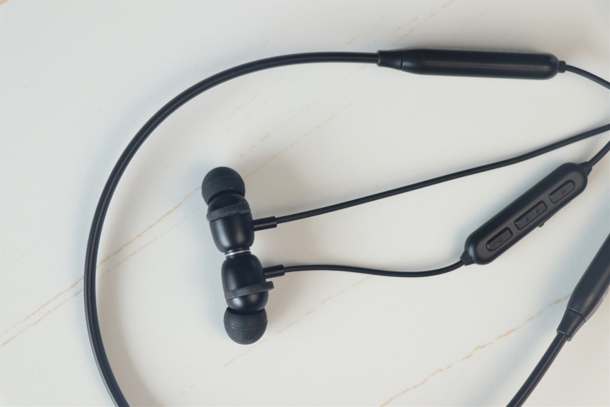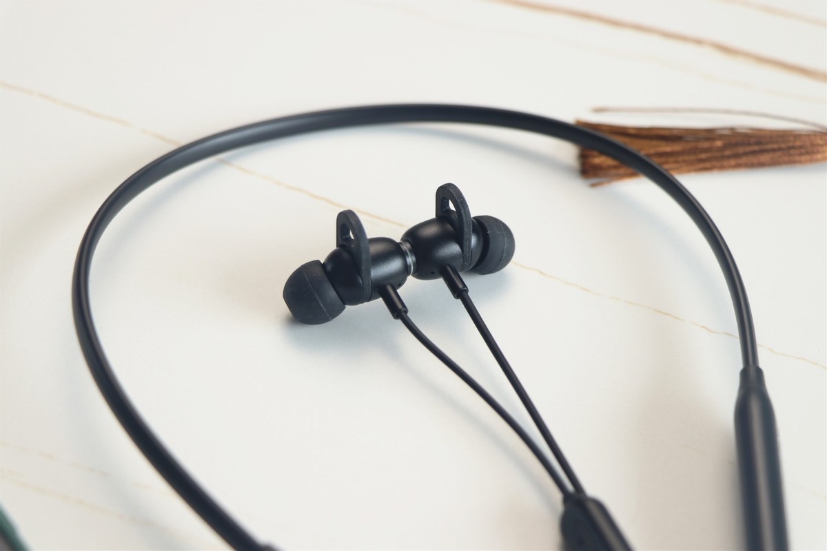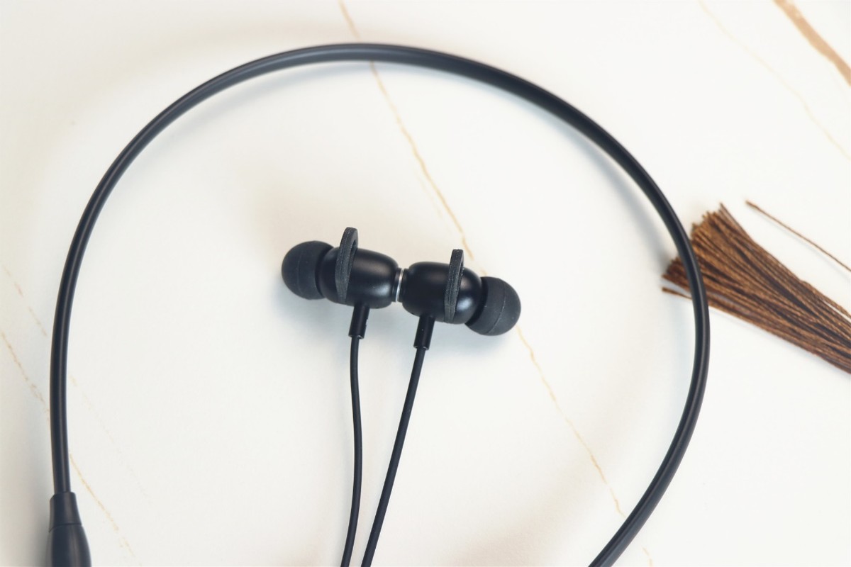 BW400的外观设计与多数颈挂式无线耳机差不多,有黑色和绿色两种颜色可选,另外整个耳机的重量只有23g,是我目前用过最轻的耳机。对于颈挂耳机我一般先得看看其颈圈的柔软程度,BW400颈圈无论怎么弯折(可以说随便蹂躏)都能恢复到原状,出门时可直接压缩装入口袋。