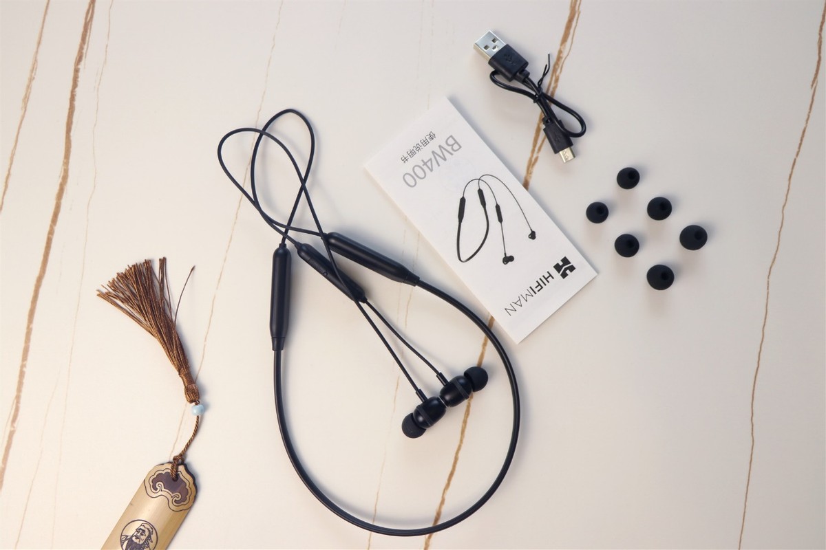 HIFIMAN BW400颈挂式蓝牙耳机在充满电的情况下可连续听歌10小时,单通话可达12小时,按照每天两小时的运动时间来算,可以做到每周一充。