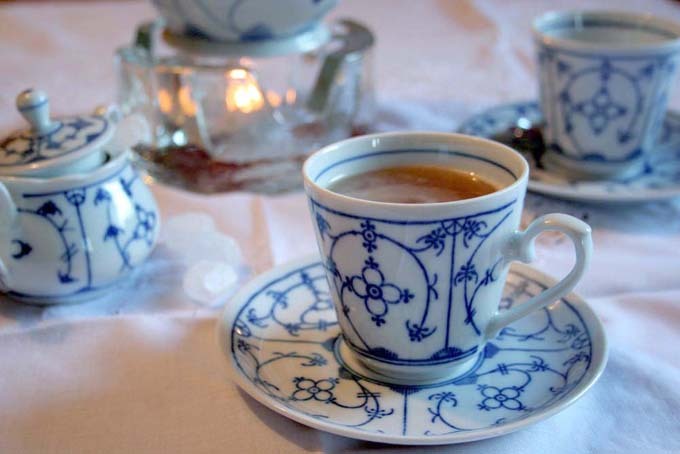 东弗里斯兰人喝的红茶是“拼配茶”主要由阿萨姆红茶组成,并加入一些斯里兰卡红茶。煮好的茶盛在瓷茶壶中,下面放着一根小蜡烛,用来保温(像不像我们的一人火锅,下面有一个酒精块点着)。