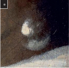 珍珠耳环位于画面的中央,虽然它并不抢眼,但是牢牢锁住了观众的目光。然而,这件首饰之所以能被历史铭记,更是因为其大胆的创作手法。1994年,专家对这幅作品展开了精细的修复,揭开了维米尔的艺术秘密。