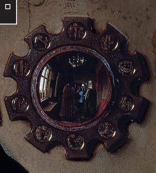 说到“画中画”,没有任何图像能超越《阿尔诺菲尼夫妇像》里的镜子。