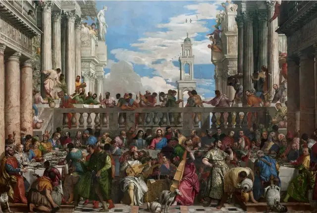 《迦纳的婚礼》,委罗内塞 1563年,布面油画,677厘米×994厘米,卢浮宫,巴黎