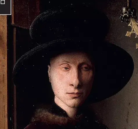 不过,他身穿毛皮内里的天鹅绒长袍和黑色上衣,精心奢华的装扮反映出他的社会地位。扬·凡·艾克不想把他塑造成一个理想化的人物,他没有迎合大众,而是采用了自然主义的写实画法。