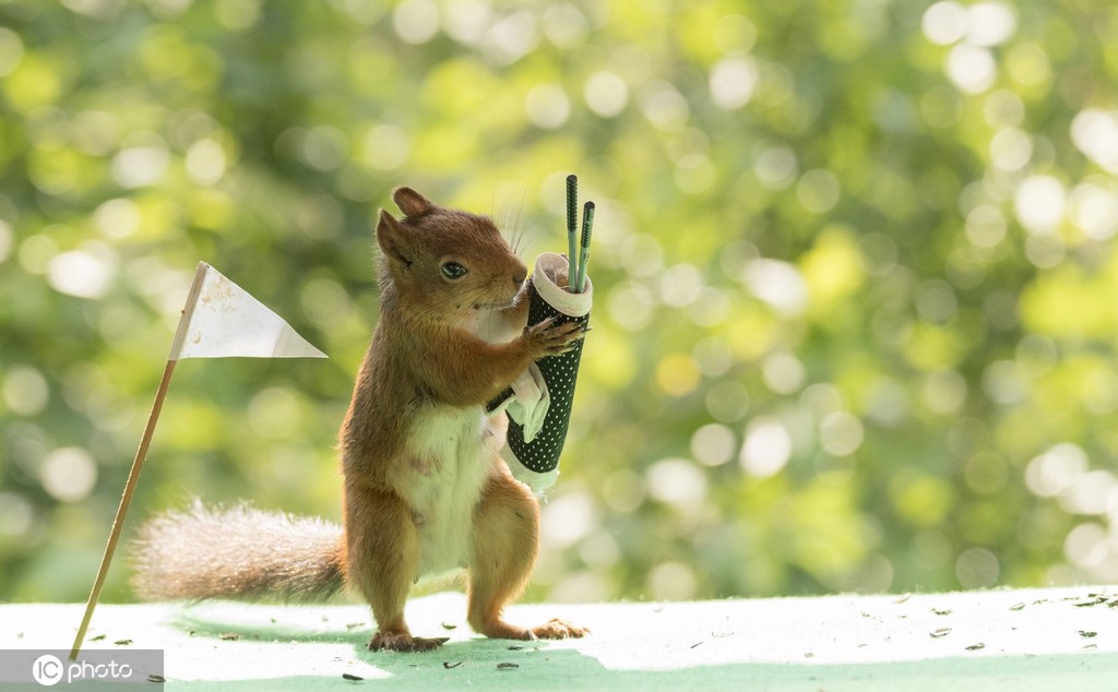 2021年8月报道,瑞典52岁的Geert Weggen在自家后院里用道具建造了一个迷你高尔夫球场,可爱的小松鼠在这个球场上玩的不亦乐乎,它们挥杆打高尔夫球有模有样,姿势和画面十分有趣。