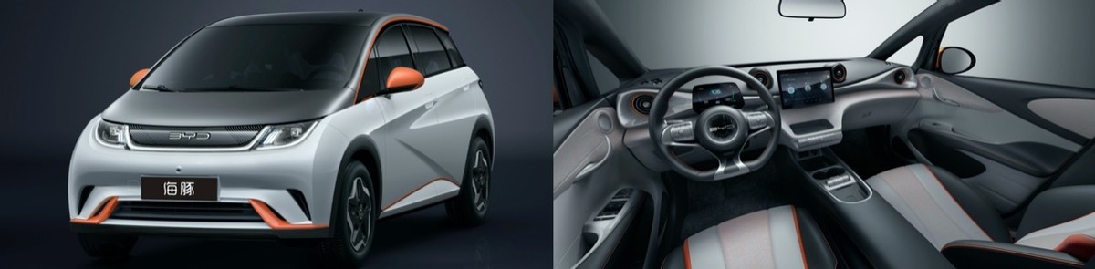 在外部设计方面,车顶的轮廓线如同“海豚”越出水面的脊背;腰线和裙线的锐利组合非常有速度感,好像“海豚”在高速冲刺;前大灯的设计被称作“海豚之眼”。类似的设计还有很多,轮毂造型让人想起“海豚”跃出水面的欢快、“水波纹前格栅”如同“海豚”推开水面泛起涟漪的愉悦。自由自在,充满活力。