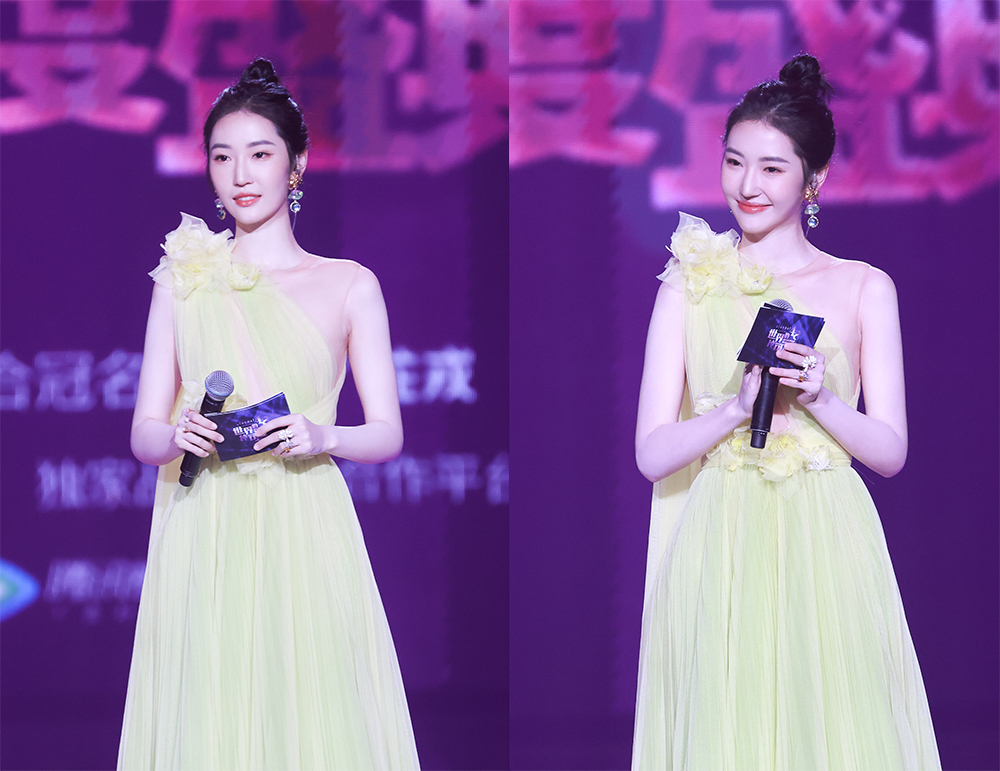 演唱会现场,高榕身穿奶黄色玫瑰礼裙,气质优雅大气,身材窈窕,魅力四射。黄色系的长裙色彩亮丽迷人,灵动的超凡脱俗,美的性感又高级,衬托着洁白的肌肤。裙身褶裥之间带着梦幻般的美丽,柔美的纱质轻灵飘逸,空气里都氤氲着温柔。