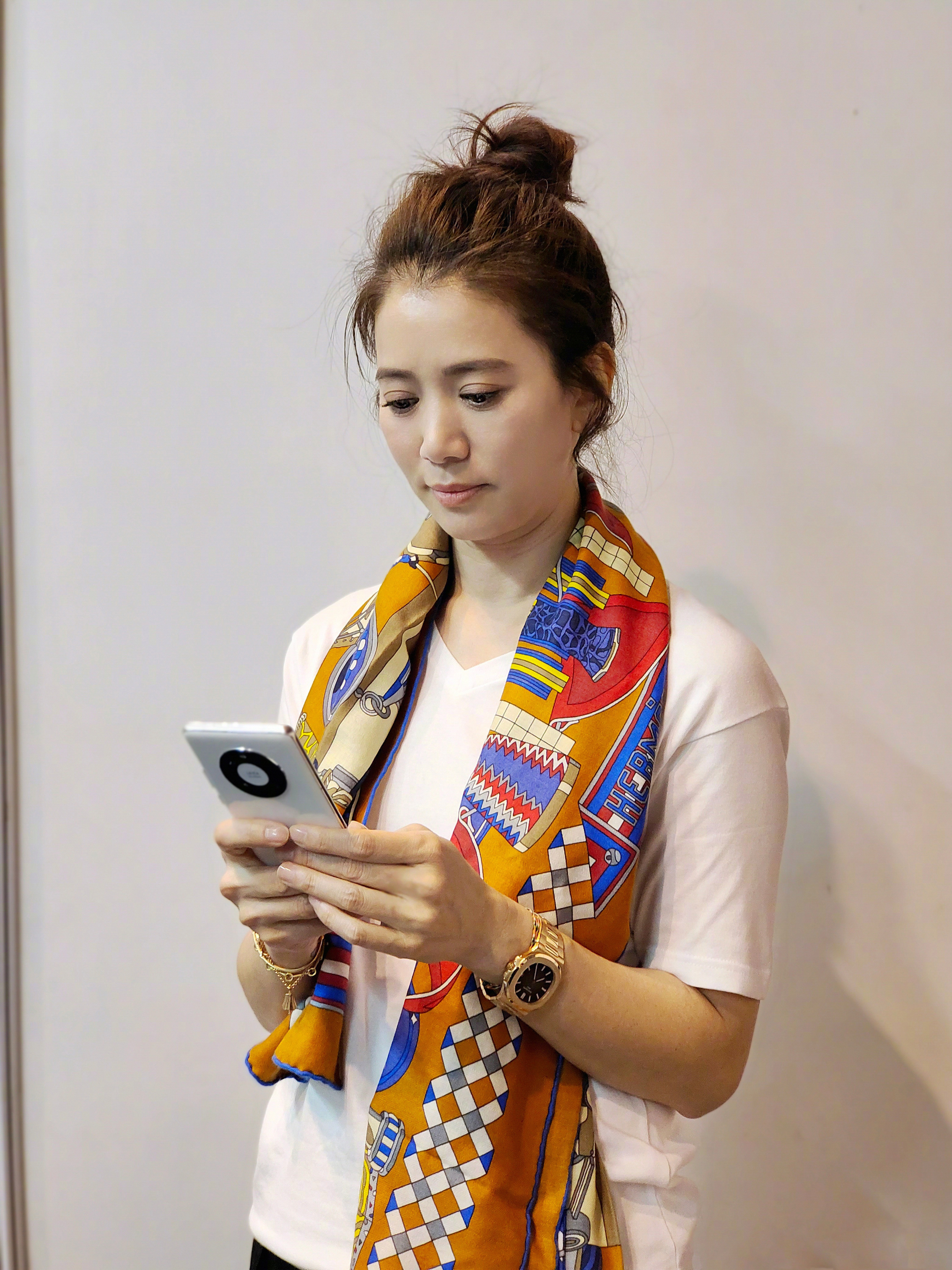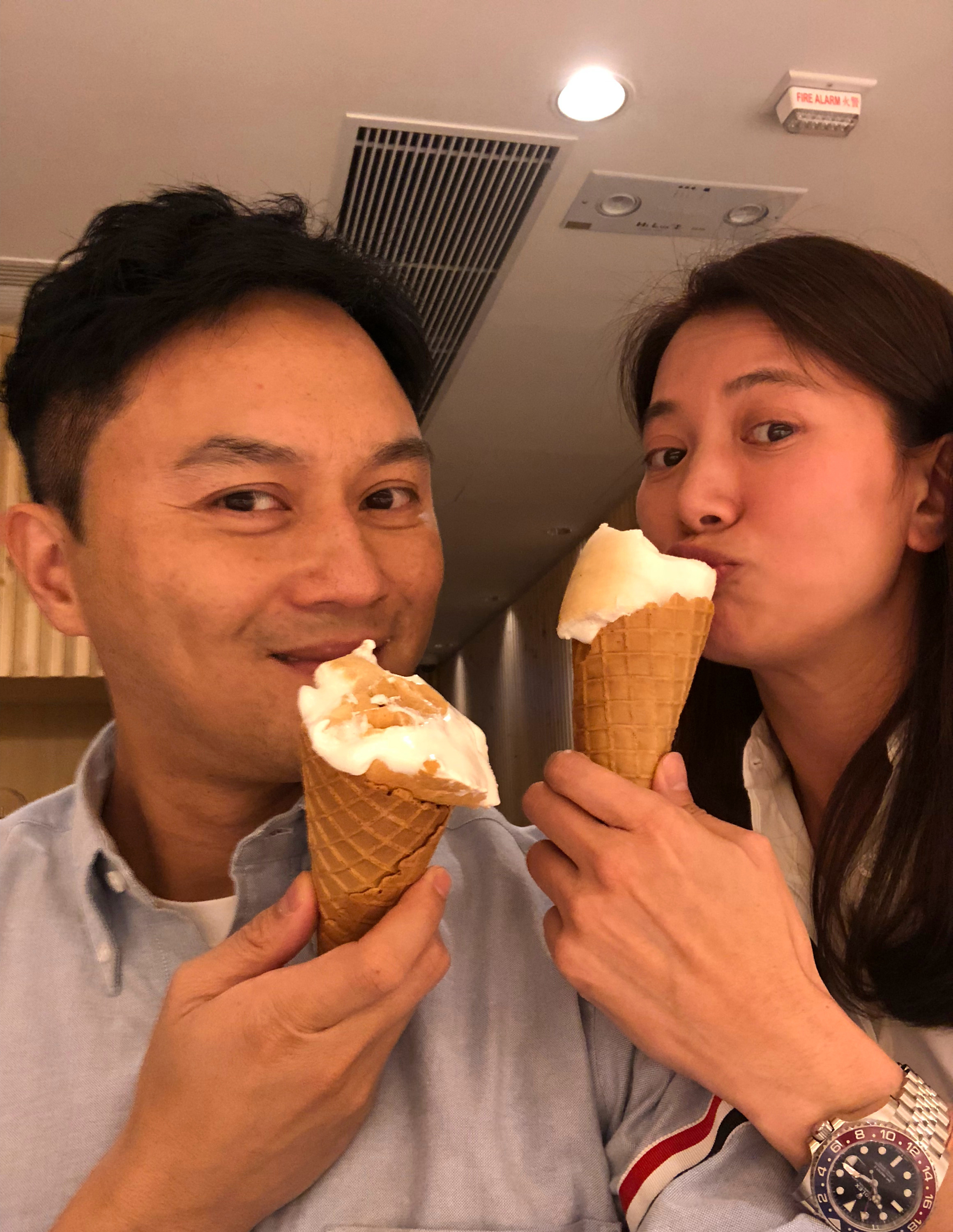 袁咏仪在社交平台发布的这张照片中手上佩戴了一枚百达翡丽鹦鹉螺腕表。