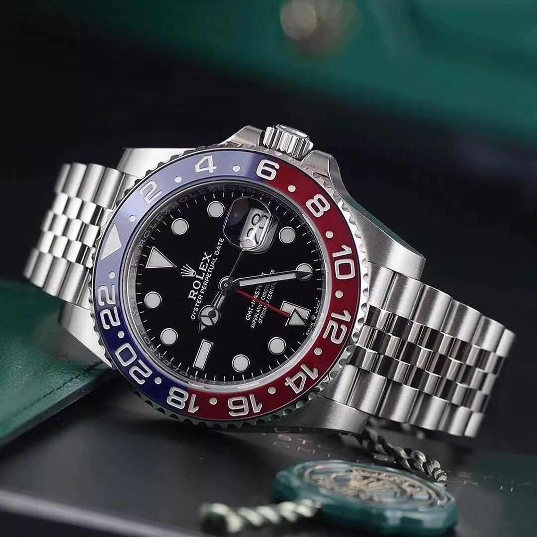 这款劳力士格林尼治型II系列M126710blro-0001腕表采用蚝式钢材质打造,表壳直径40毫米,具有100米防水性能。搭配红蓝色GMT旋转表圈,辨识度极高。搭配黑色表盘,特大指针与简洁的三角形、圆形或长方形钟点标记均覆有夜光涂层,即使在黑暗的环境中也能够清晰读时。内部搭载3285自动上链机芯,可提供70小时动力储存。