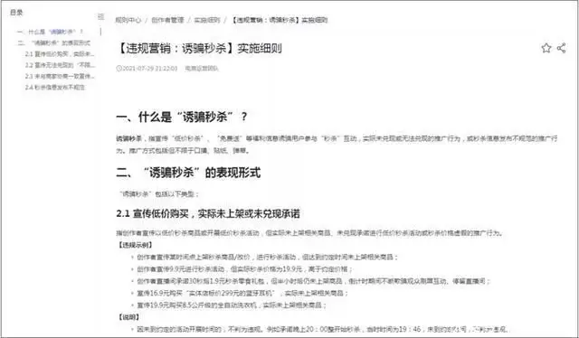 据最新消息,抖音发布了“【违规营销:诱导互动】实施细则”。第二天,抖音又紧接发布了“【违规营销:诱骗秒杀】实施细则”。