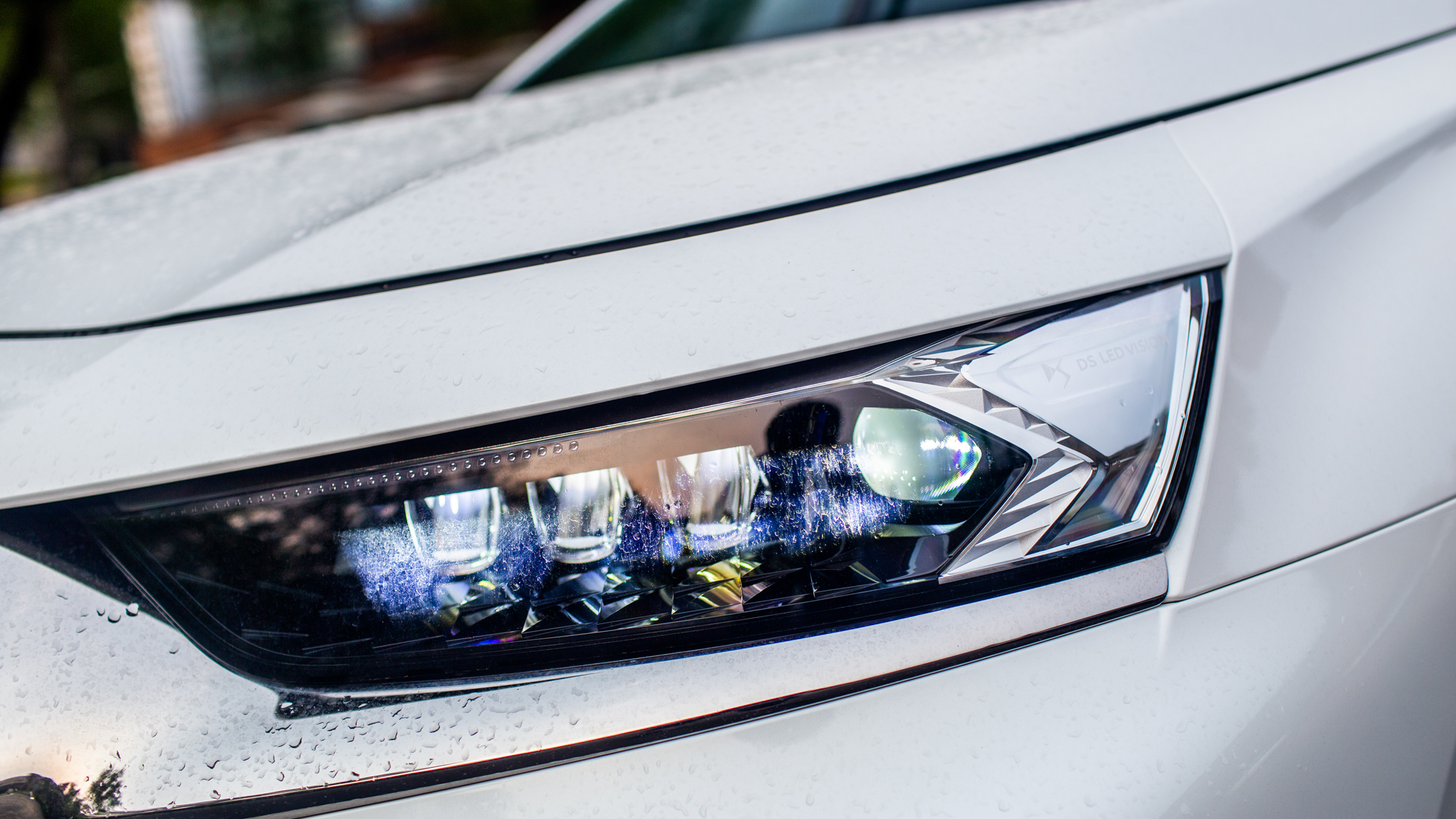 LED灯珠在熏黑的大灯中点亮,如光芒打在水晶般的质感。