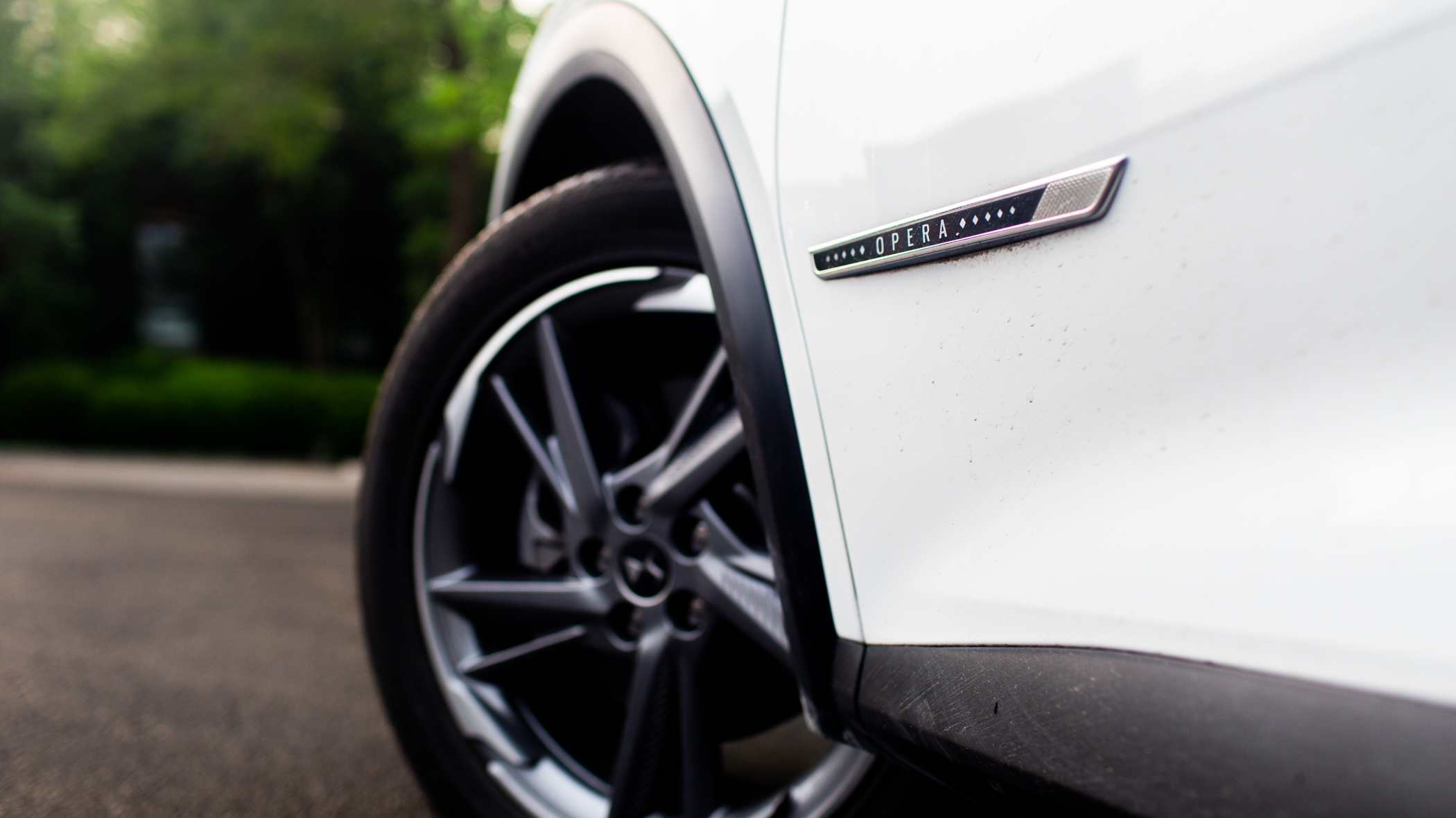 轮毂采用了哑光灰色配合适当的亮色,视觉效果也非常动感。轮胎采用了马牌ContiCrossContact LX Sport系列,尺寸为235/50 R19。门板下方也镶嵌了象征其歌剧院版本的标识。