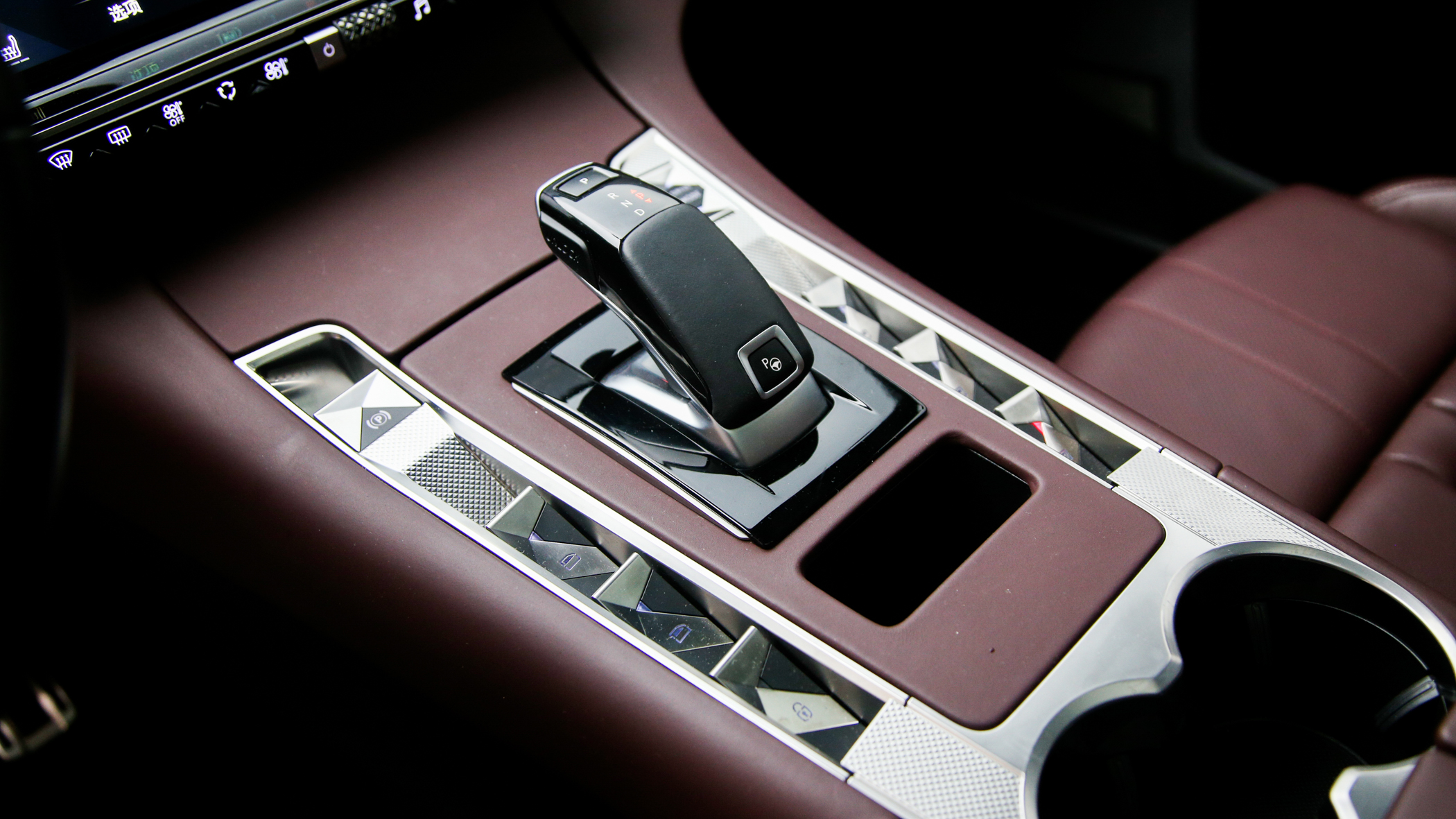 车内最有仪式感的设计,还是在于档杆与周围的按键。电子档杆的造型确实很熟悉,与现款PSA旗下车型基本一致。而左右排布了驻车制动、驾驶模式选择,两侧车窗升降与中控、车窗锁非常有仪式感的分列于两侧,水晶切割的型面反射出的光影质感确实很显档次。但确实,它同样需要适应的过程。