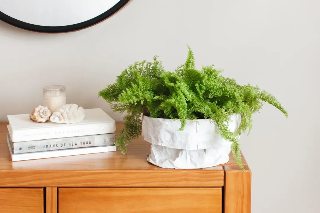另外,养观赏蕨类时,可以在花盆底部放入一个浅盆或托盆,在里面放上一些鹅卵石,再倒入适量清水,水位不要没过鹅卵石顶部,接着就可以将盆栽蕨类植物摆放在鹅卵石上,就可以持续增加空气湿度,这种方法也可以给其他植物增加湿度。