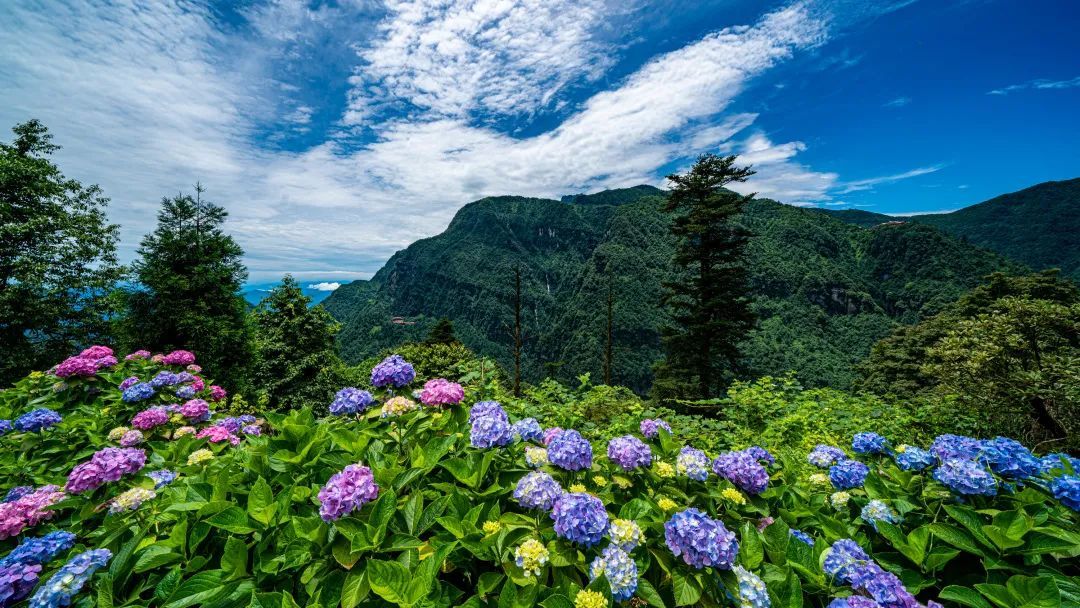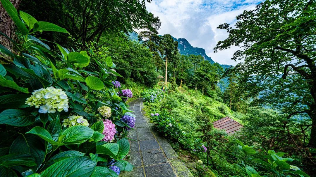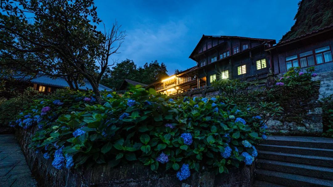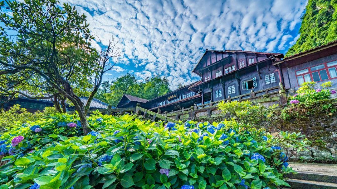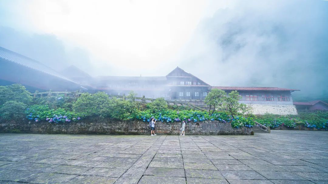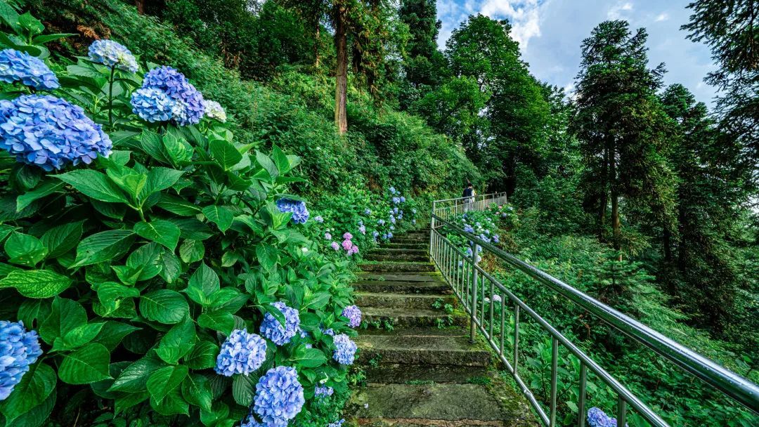 此刻绣球花铺满了整座仙峰寺