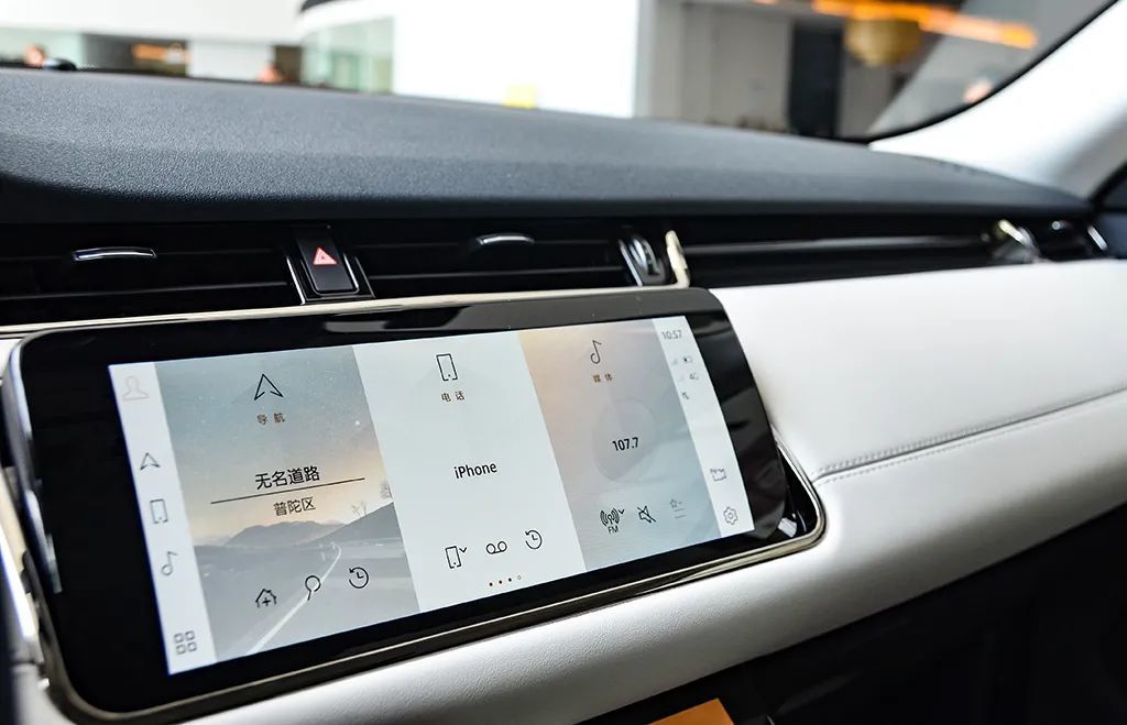 路虎捷豹车型充满仪式感的升降式旋钮换挡机构早已消失不见,揽胜极光L同样也没有带来惊喜。不过其全系标配12.3英寸全液晶仪表和10.2英寸中控屏设计,也让它营造出不俗的科技氛围。并且多媒体版本也升级为最新InControl OS 2.0系统,同时全系标配苹果CarPlay与百度CarLife互联功能,配合本就细腻、高档的皮革用料,揽胜极光L车厢豪华时尚氛围扑面而来,“闻”起来都觉得香。