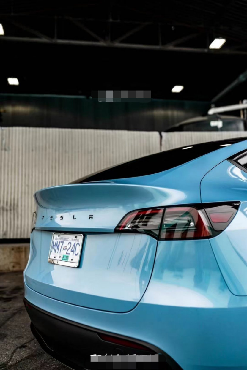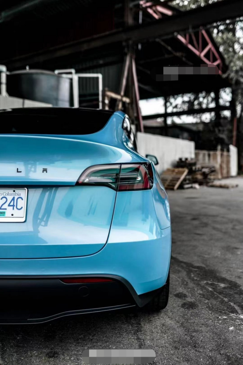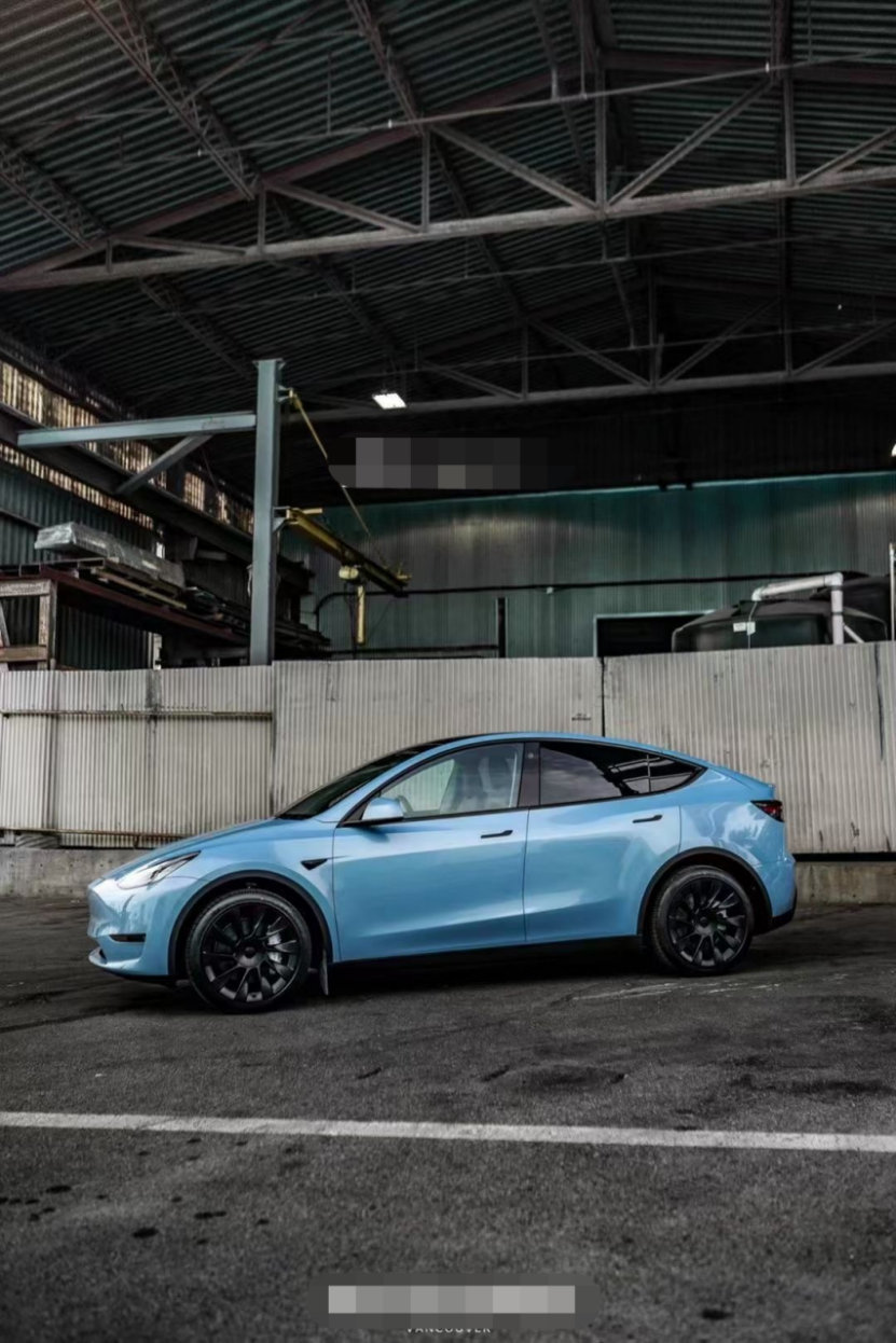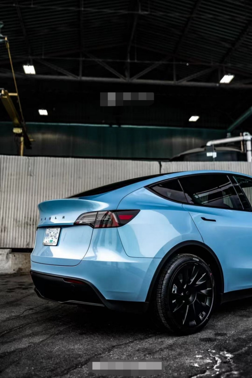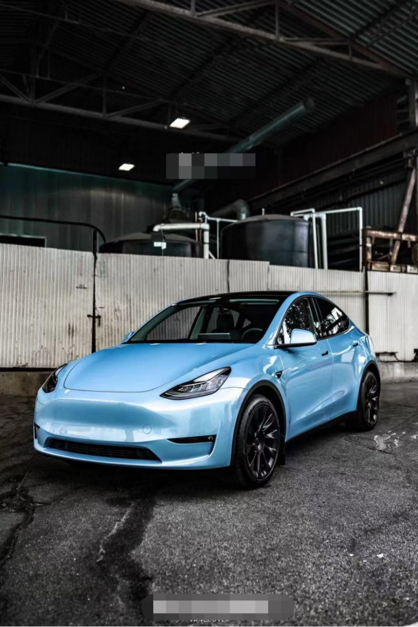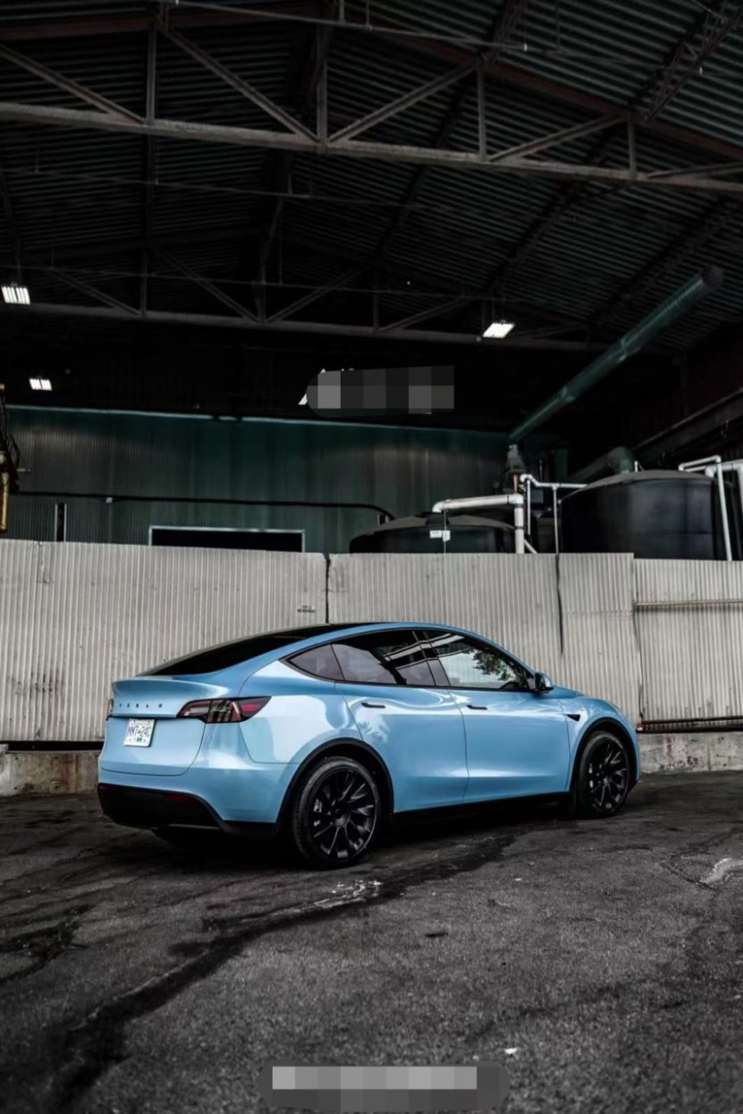 膜呗改色案例:ModelY改色冰晶蓝 散发着环保的气息