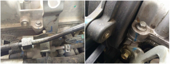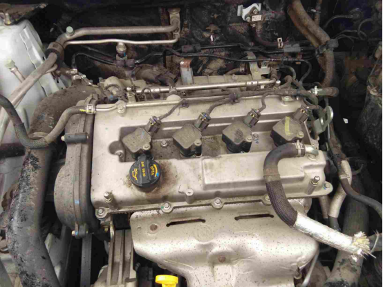 气门室盖罩、发动机缸体、发动机固定支架都有拆卸、修复痕迹,原厂漆线已经面目全非,发动机缸体表面没有渗漏油。