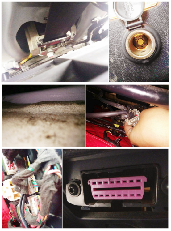 车辆的方向盘转向柱、座椅底部、地胶、安全带、点烟器、车内线束和保险丝盒没有发霉、泥沙、锈蚀痕迹,排除了水淹车的可能。