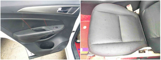 车门内饰、座椅和顶棚没有破损痕迹,也没有大面积的污渍情况。