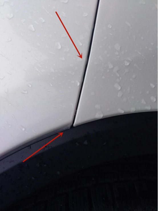 前保险杠和翼子板的缝隙、边缘对不上,冲压痕没有在一条线上,前保险杠更换。