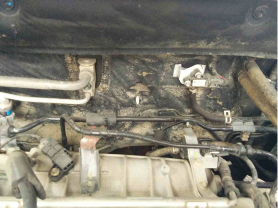减震器座、防火墙没有钣金、变形痕迹,前方事故并未伤及到这。防火墙隔音棉上有些许泥沙,不一定是水淹造成的,还需要结合内饰或其他部位综合判断,也有可能是密封不严造成的,倘若是这样,质量让人堪忧。