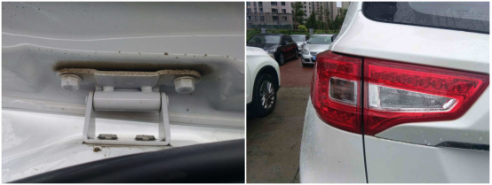 后备箱盖、后尾灯漆面和钣金胶正常,螺丝无拆卸。
