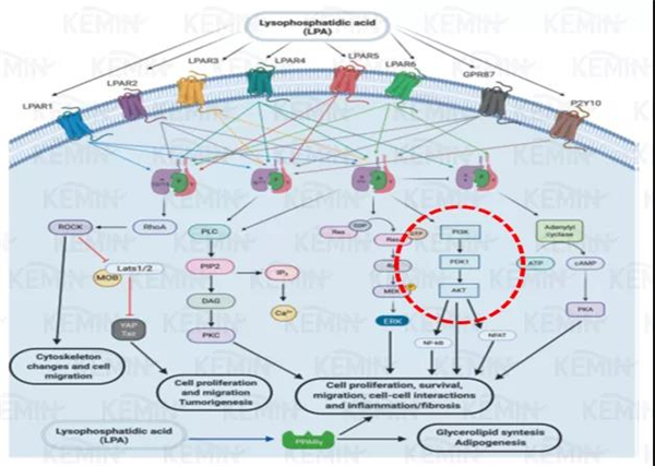 溶血磷脂酸(LPA)通过Pi3K/Akt信号通路进一步增强mTOR信号通路激活(图6)。 利通宝®富含LPI和LPA,通过多种溶血磷脂的科学比例实现动物对油脂和蛋白的最佳利用,节省饲料成本,提高动物生产性能。