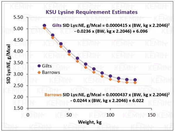 图4堪萨斯州立大学推荐猪只赖氨酸需求量