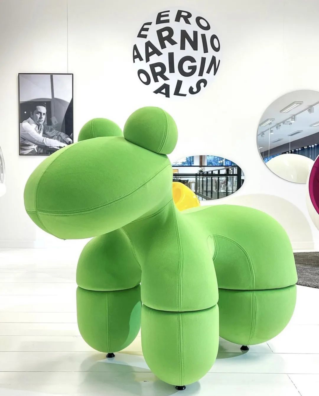 颜色多样、形象可爱的 Pony 小马椅也深受大家喜欢,Eero Aarnio 说:“椅子是用来坐的,但可以坐的不一定是椅子。只要符合人体工程学,它可以是任何东西。一个座位甚至可以是一个小而柔软的小马,你可以骑在上面或者侧身坐着。小马看起来像孩子的超大玩具,但它的尺寸适合成人坐。当然,我们都是大孩子。”
