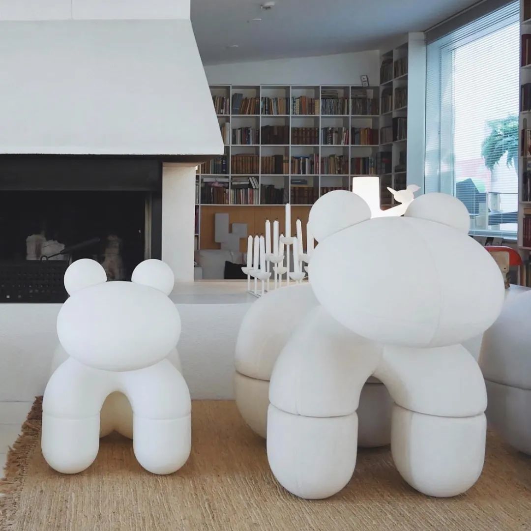 后来 Faye 与意大利设计品牌 Driade 推出了亲民版的限量合作系列,这个系列更加实用,保留了原版的雕塑感和趣味性,采用聚乙烯制成,室内室外都可以使用,适合任何空间,且都不会有违和感。