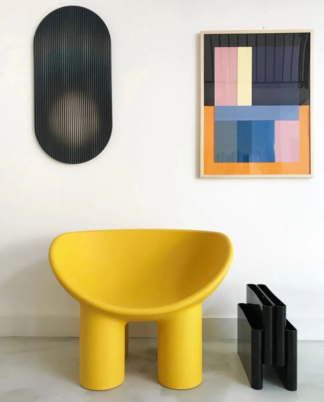 阳台上的休闲椅来自 Roly Poly,因四条粗壮有力的腿椅像极了大象的腿,所以也被称为“象腿椅”,是英国设计师 Faye Toogood 职业生涯里最经典的代表作品,原始版本采用玻璃纤维制成,均价在 4w 以上,材质不同,价格也有所区别。