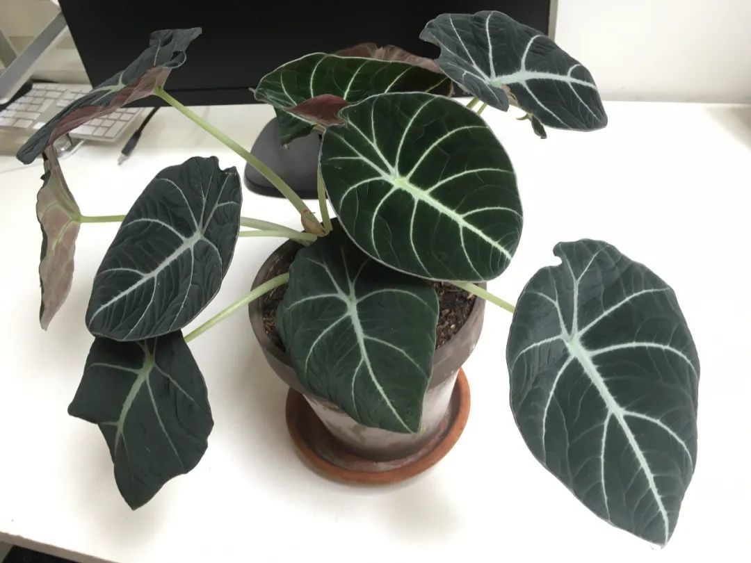 海芋的品种极其丰富,都是属于天南星科的植物,黑鹅绒海芋的价格略微偏高,所以养这种植物的朋友并不是太多,但并不意味它的养护难度很高,在光线明亮的桌面上,它可以维持存活。
