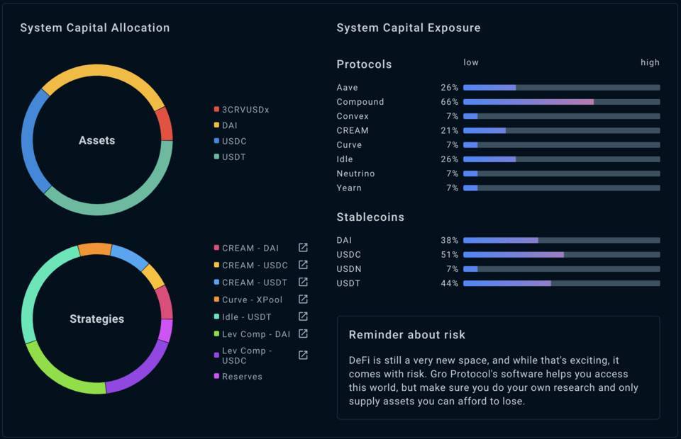 稳定币收益协议 Gro 目前提供低风险储蓄产品 PWRD 和高风险产品 Vault,会使用用户提供的稳定币在第三方 DeFi 协议获取收益,不同的是,Vault 在享受高收益的同时,需要为 PWRD 充当承保人。