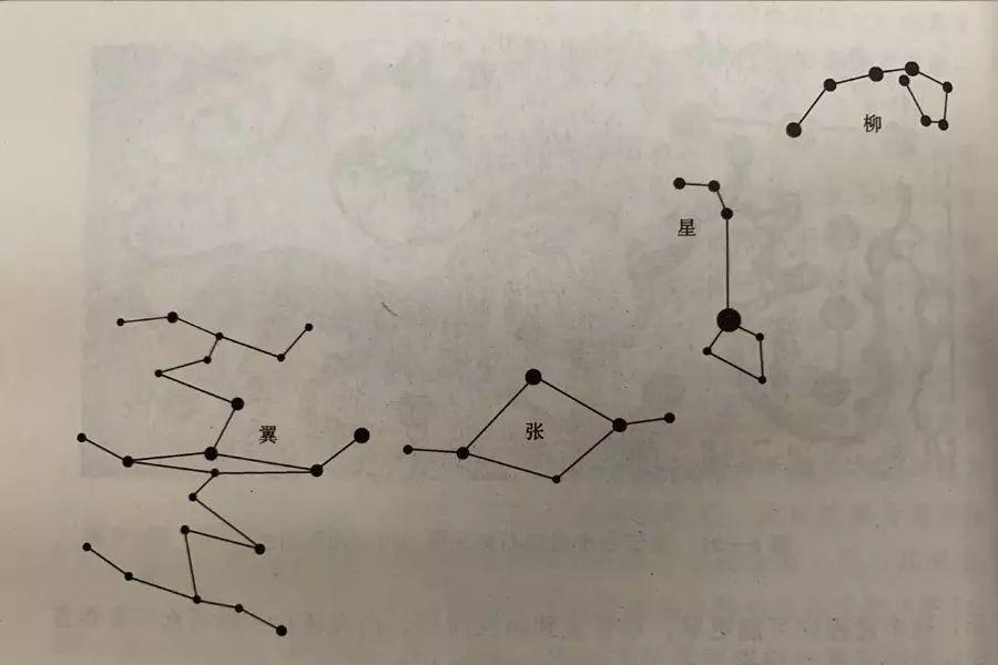 张是鸟嗉之意;柳宿又称为“咮(zhòu)”,指鸟嘴;星宿则是鸟的脖子。