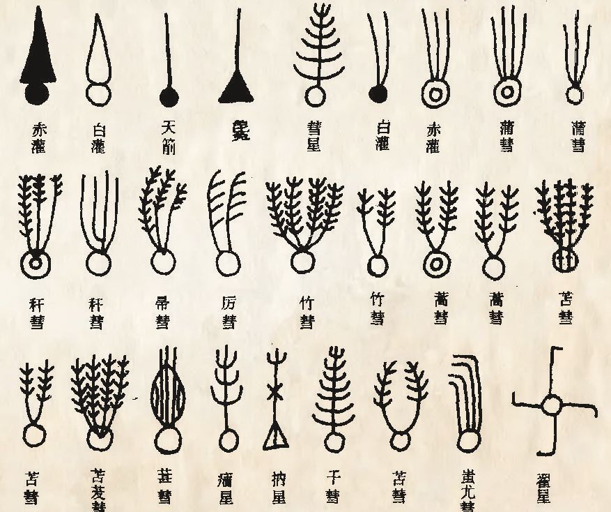 长沙马王堆三号墓的长方形髹漆木匣中,发现大量帛书,其中一幅被称为《天文气象杂占》上,画着29种形态各异的彗星。虽然此物汉初才被放入墓中,但却出自战国时代楚国人手笔,彗星图的出现比西方早越四百年。